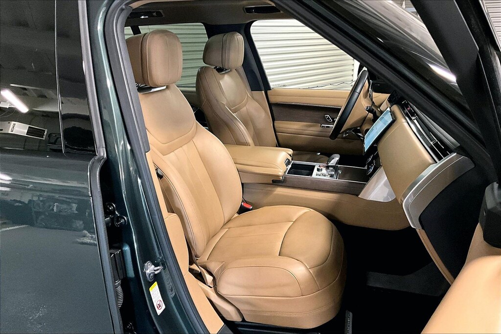 Certified. Caraway/Caraway Leather, 24-Way Htd/Cooled Massage Electric Fr Bucket Seats, Cabin Air Purification Pro, ClearSight Interior Rear View Mirror, Domestic Plug Socket, Front Center Console Refrigerator Compartment, Head-Up Display, Heated Windscreen, Hot Climate Pack, Navigation system: Pivi Pro Connected Navigation, Pixel LED Headlights w/Signature DRL, Power moonroof, Radio: Meridian Sound System, Shadow Exterior Pack, Technology Pack, Wheels: 23" Gloss Black (Style 1075), Wireless Apple CarPlay/Wireless Android Auto. Belgravia Green Metallic 2023 Land Rover Range Rover SE AWD 3.0L I6 Turbocharged